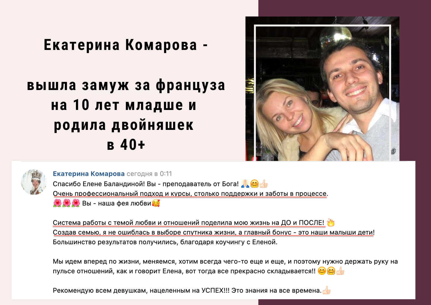 Екатерина вышла замуж за француза на 10 лет младше и родила двойняшек в 40+